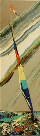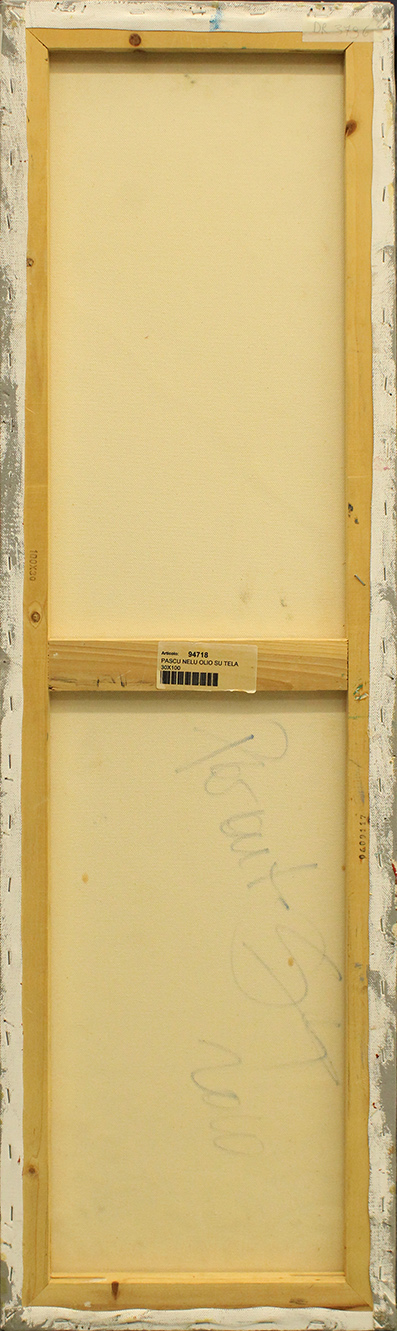 NELU PASCU, 2010, olio su tela, 100x30x1 cm, peso 1,30 kg. Al fronte: firma in basso a sinistra. Al verso: etichetta con informazioni, anno, firma, dichiarazione di autenticità da parte dell'artista. Autentica su foto dell'artista. Opera con certificato di provenienza della Daliano Ribani Arte. Opera senza cornice.