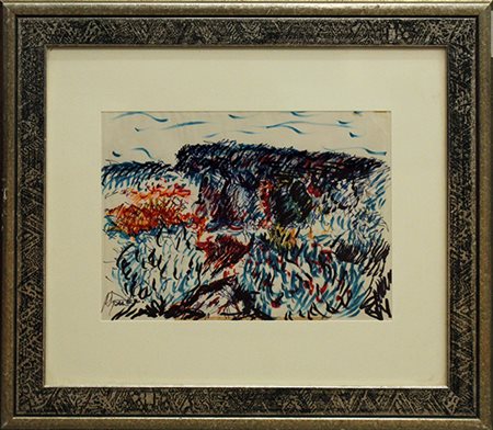BEPPE GUZZI, anni '60, pennarelli su carta, cm 36x51, con cornice 48x54x2 cm, 1 kg. Al fronte: firma in basso a sinistra. Opera con certificato di provenienza della Daliano Ribani Arte. Opera con cornice.