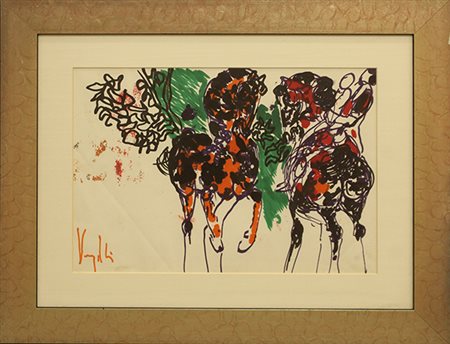 ANTONIO VANGELI, anni '80, pennarelli su carta, cm 46x32, con cornice 52x65x1 cm, 2 kg. Al fronte: firma in basso a destra. Opera con certificato di provenienza della Daliano Ribani Arte. Opera con cornice.