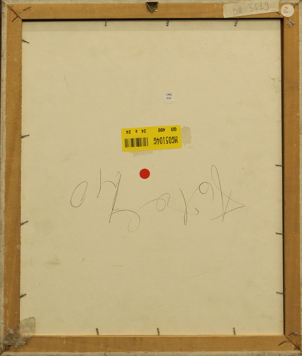 NAZZARENINO CUGURRA, "Gallo Livornese", 1975, acquarello su cartoncino, cm 34x24, con cornice 49x41x2,5 cm, 1 kg. Al fronte: al fronte titolo in basso a sinistra e firma e data in basso a destra. Opera con certificato di provenienza della Daliano Ribani Arte. Opera con cornice.