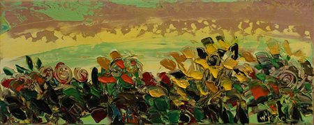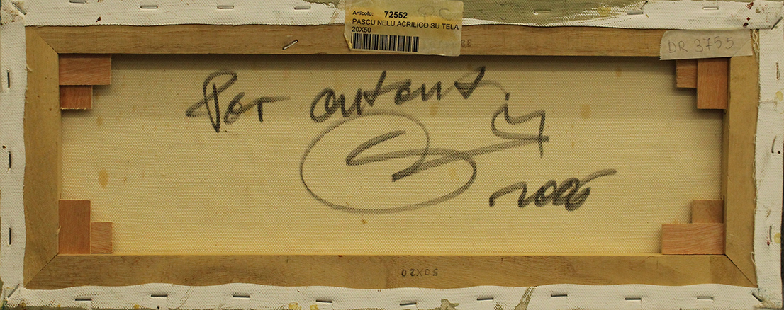 NELU PASCU, 2006, olio su tela, 20x50x1 cm, peso 0,40 kg. Al fronte: firma in basso a destra. Al verso: firma, anno, dichiarazione di autenticità da parte dell'artista. Autentica su foto dell'artista. Opera con certificato di provenienza della Daliano Ribani Arte. Opera senza cornice.