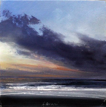 AGOSTINO CANCOGNI, "Ultimo sole", anni 2000, olio su tavola, 30x30. Al fronte: firma in basso al centro, al verso: firma e titolo in basso al centro, autentica su foto dell'artista