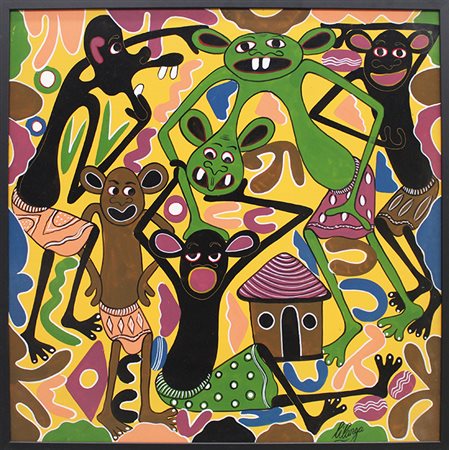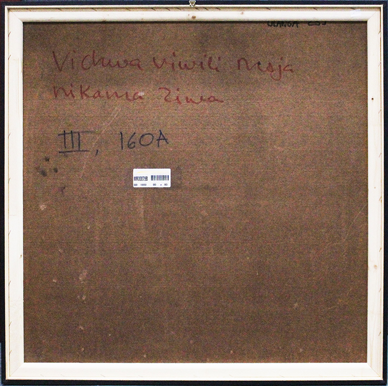 LILANGA, "Vichwa viwili moja nikawa ziwa" (Due teste, una come un lago), Anni 2000, Acrilico su faesite, Dim. 80x80. Al verso: titolo e firma. Al fronte: firma in basso a destra