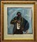 ANONIMO, "Figura con fisarmonica", anni '80 circa, olio e tempera su cartoncino, dim 46x40. Al fronte: firma in basso a destra. Opera con cornice.