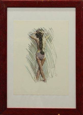 MIMMO ROTELLA, "La Vergine", anni '70, riproduzione fotolitografica (4 colori offset) dell'opera originale di Mimmo Rotella, espressamente eseguita per la serie "Lo Zodiaco" di BolaffiArte, dim 28x20 cm. Al verso: etichetta in alto a destra con informazioni. Opera con cornice.