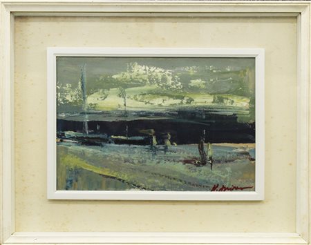ANONIMO, "Paesaggio", tecnica mista su cartoncino, dim 25x38 cm. Al fronte: firma in basso a destra. Opera con cornice.