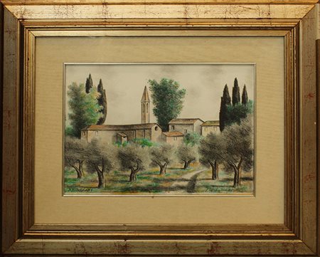 NINO TIRINNANZI, anni 80, litografia su cartoncino cm 27x37, con cornice cm 50x60x4, kg 2, esemplare n. XVI bis/XXV. Al fronte tiratura in basso a sinistra e firma in basso a destra. Opera con certificato di provenienza della galleria Daliano Ribani Arte.