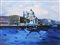 M. DE LUCA, "Salute", anni '80, olio su tela, dim 60x80 cm. Al fronte: firma in basso a destra. Al verso: titolo e dichiarazione di autenticità da parte dell'artista, firma a destra
