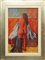GAUDENZIO NAZARIO, "Dopo il bagno", 1973, olio e pastelli su cartoncino, dim 55x38 cm. Al fronte: firma in basso a destra. Al verso: timbro della Galleria Accademia al centro e in basso etichetta della Galleria Accademia con informazioni. Opera con cornice.
