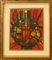 GIANBAR, "Natura morta con bottiglia e frutta", 1973, olio su tela intavolata, cm 24x19, con cornice 35x30x4 cm, 1 kg. Al fronte: firma in alto a destra. Al verso: in alto firma, anno, titolo, in basso timbro della Galleria Accademia di Torino. Opera con certificato di provenienza della Daliano Ribani Arte. Opera con cornice in omaggio.
