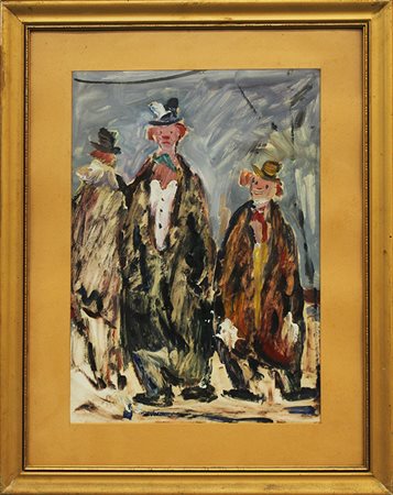 NANDO DA PISTOIA, "Personaggi", anni '70, olio su cartoncino, dim 33x23. Al fronte: firma in basso a sinistra. Opera con cornice in omaggio