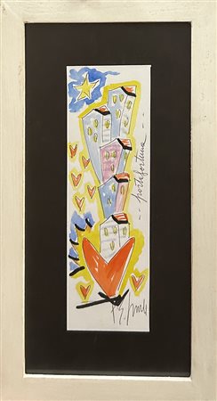 PAOLO EMILIO GIRONDA, "Portafortuna", acquerello su cartoncino, cm 23x8, con cornice 36x21 cm. Al fronte: firma in basso a destra e titolo in alto a destra. Al verso: certificato di autenticità. Opera con cornice