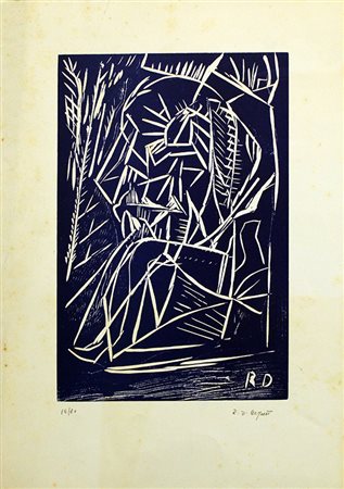 ANONIMO, anni '70, litografia su cartoncino, 43x30 cm. Al fronte: firma in basso a destra, esemplare in basso a sinistra. Presenta fioritura. Opera con certificato di provenienza della Daliano Ribani Arte. Opera senza cornice.