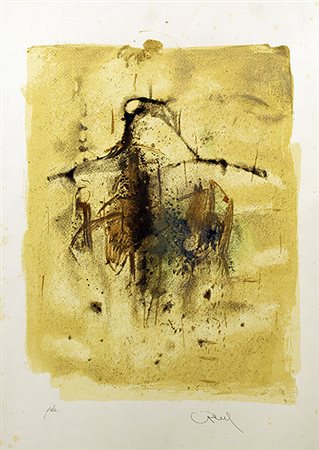 ANONIMO, "Paesaggio astratto", anni 70, litografia su cartoncino, esemplare PDA, cm 70x50. Al fronte: firma in basso a destra e tiratura in basso a sinistra. Presenta segni del tempo. Senza cornice.