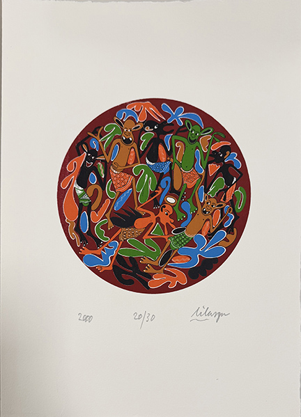 GEORGE LILANGA, "Three Graphics", anni 1978-2000 circa, tre litografie su cartoncino, cm 40x30. Al fronte: firma in basso a destra tiratura in basso al centro e anno in basso a sinistra. Opere senza cornice, accompagnate da certificato di provenienza.