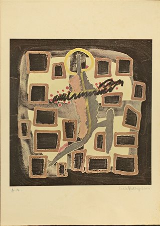 MARIA ROTTA FALCONE, litografia su cartoncino, cm 70x50, esemplare P.A. Al fronte: tiratura in basso a sinistra e firma in basso a destra. L'opera presenta fioritura. Opera con certificato di provenienza della galleria Daliano Ribani Arte. Opera senza cornice.