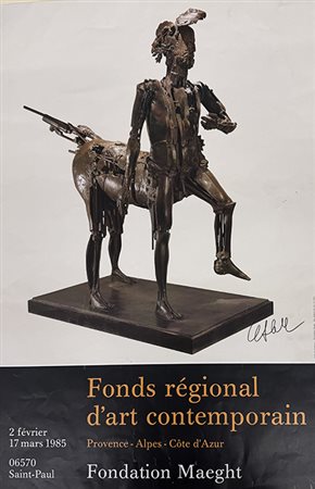 Manifesto di CESAR BALDACCINI firmato, 1985, manifesto della mostra raffigurante "Le Centaure", cm 67x45. Al fronte: firma in basso a destra. Opera accompagnata da certificato di provenienza. Opera senza cornice
