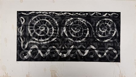 LUCIANO LATTANZI, Senza titolo, incisione su cartoncino, cm 37x64,5. Al fronte: firma in basso a destra e tiratura 21/25 in basso a sinistra. Opera accompagnata da certificato di provenienza. Opera senza cornice. L'opera presenta fioritura e segni del tempo