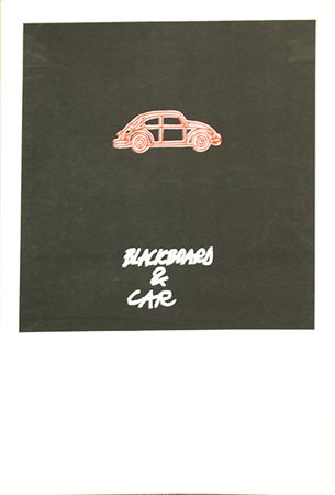 FABIO DE POLI, Blackboard & car, 1976, litografia a colori, cm. 70x50. esemplare PA. Al fronte: firma, anno, tiratura in basso al centro. Opera senza cornice.