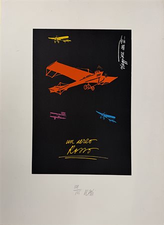 FABIO DE POLI, "Un aereo rosso", litografia su cartoncino, cm 70x50. Al fronte: tiratura in basso al centro 108/125 e firma. Opera accompagnata da certificato di provenienza. Opera senza cornice