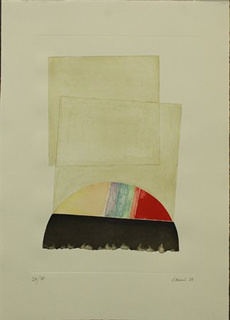 EUGENIO CARMI, "Composizione verticale", 1999, incisione su cartoncino, 88x61 cm, esemplare 22/75. Al fronte: tiratura in basso a sinistra, firma e anno in basso a destra. Opera senza cornice.